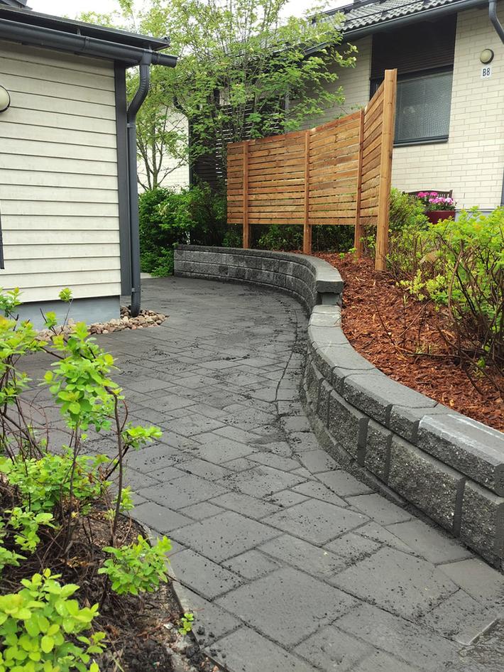 Kivetykset,tukimuurit, istutusaltaat, vanhan kivetyksen kunnostus ja pihan viimeistely